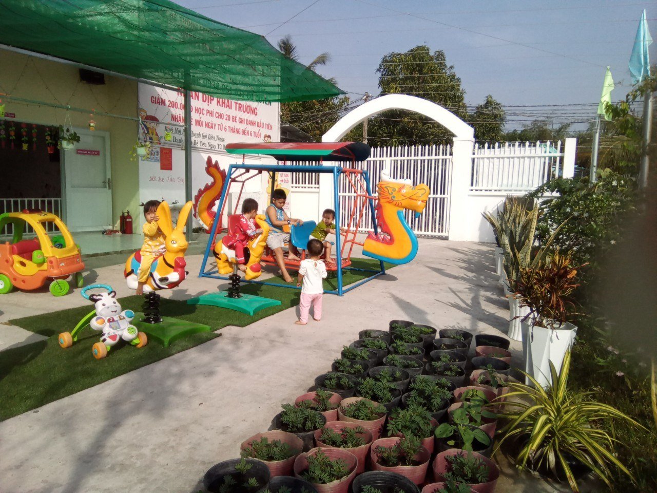 Bé đến trường được giáo viên dạy mỗi ngày theo chương trình của Phòng giáo dục và đào tạo Huyện Thủ Thừa.